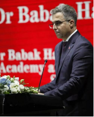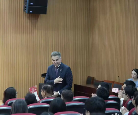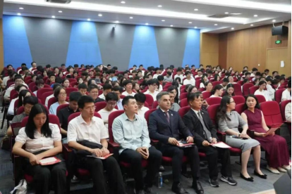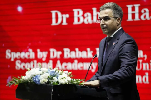 苏格兰学院英方负责人Babak Habibnia教授上台发言,结合学院特色与培养目标,为新生解析学业规划方向,勾勒未来成长路径。