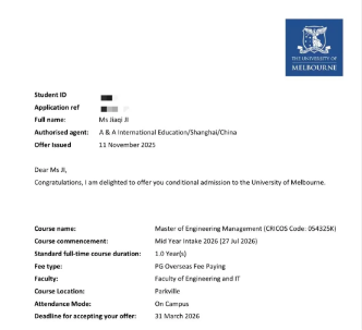 为了全面提升申请竞争力,我还利用课余时间反复打磨简历与个人陈述,力求全面、真实地展现自己的学术背景、实践能力与未来潜力。近期,我正式递交了研究生申请,并非常荣幸地获得了伦敦大学学院(UCL)、悉尼大学(USYD)和新南威尔士大学(UNSW)等心仪院校的预录取offer。